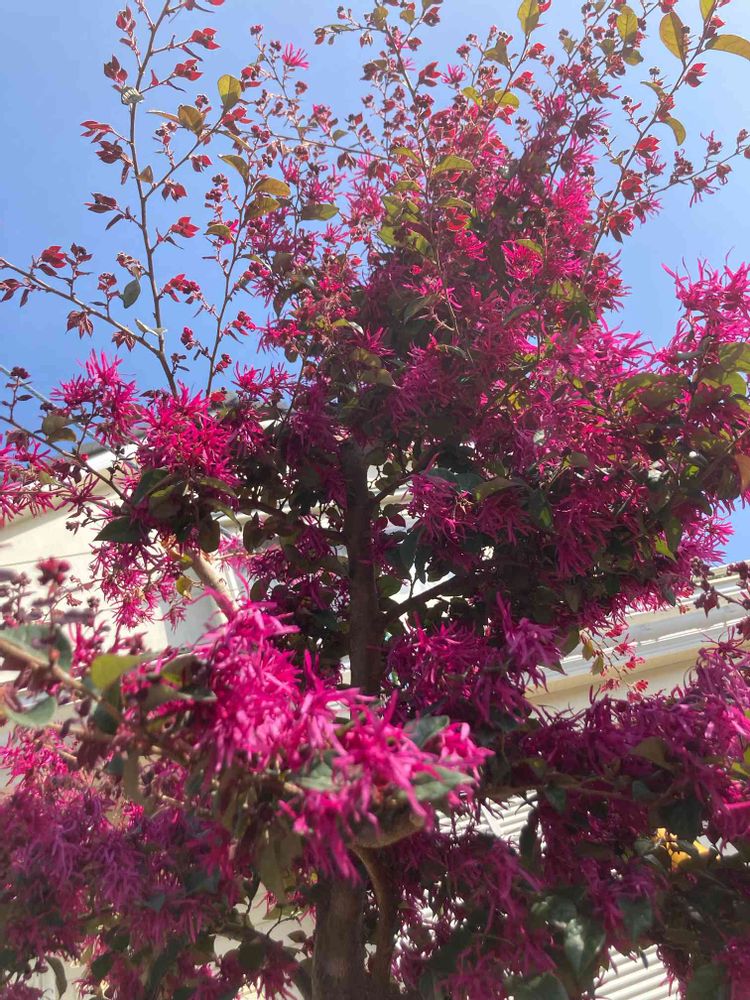 剪定し過ぎたので、今年はちょっと寂しいけど、青空にトキワマンサクは最高です