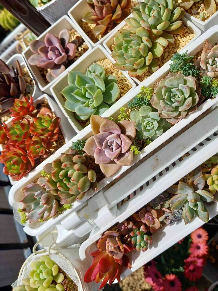 細長いお弁当箱のように多肉が詰めやすく、セダムを添えれば寄せ植えもどきになります😊