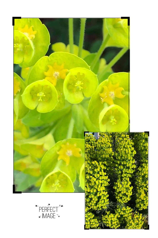 花序はトウダイグサ科の植物に特有の杯状花序(ハイジョウカジョ)で、ユニークな形をしています。