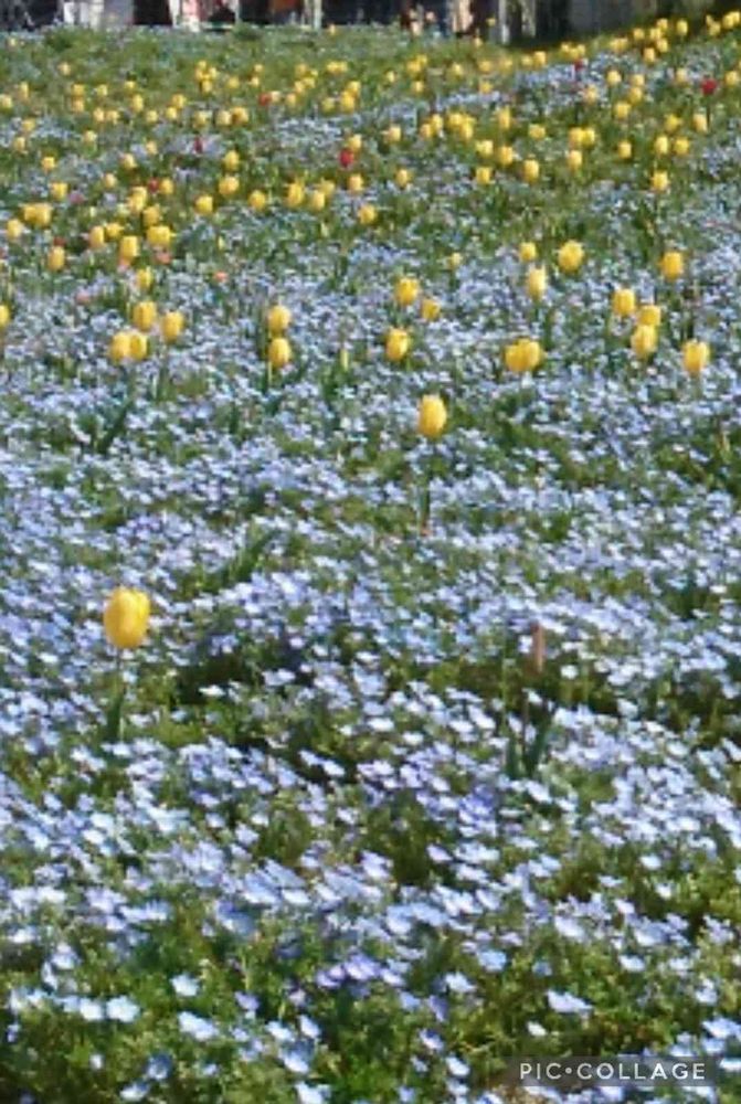 ネモフィラとチューリップのコラボ、綺麗でしたo(*⌒―⌒*)o