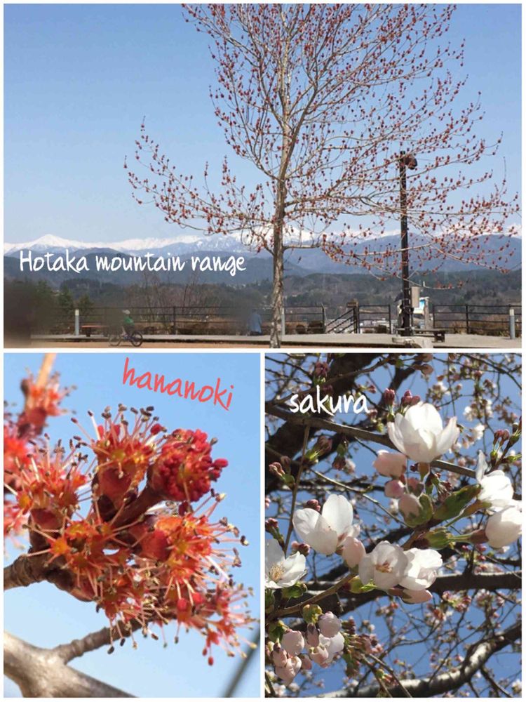見ました💖ハナノキの赤と後ろの澄んだ雪山🏔の景色が美しいですね❤️🤍💙