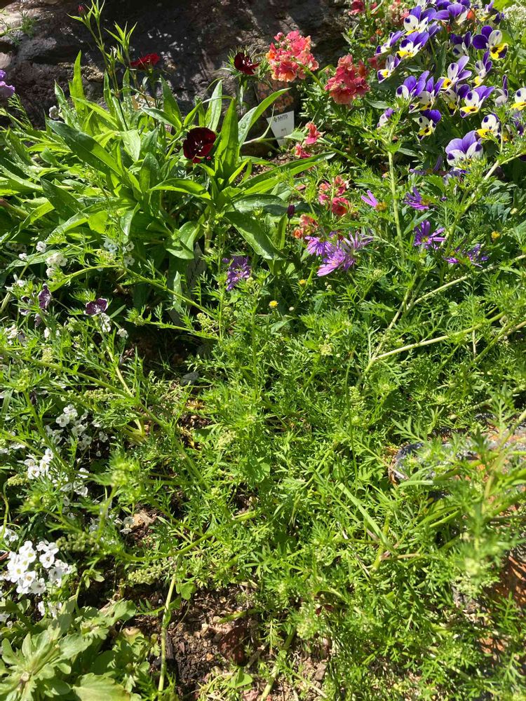 小さなつぶつぶの集まりが立ちあがるみたいな感じなんです。(アリッサムの花後みたいな雰囲気で)写真中央くらいの蕾はホントのカモミールです😅 こぼれ種で色々咲いてるので余計紛らわしいですね🙏💦