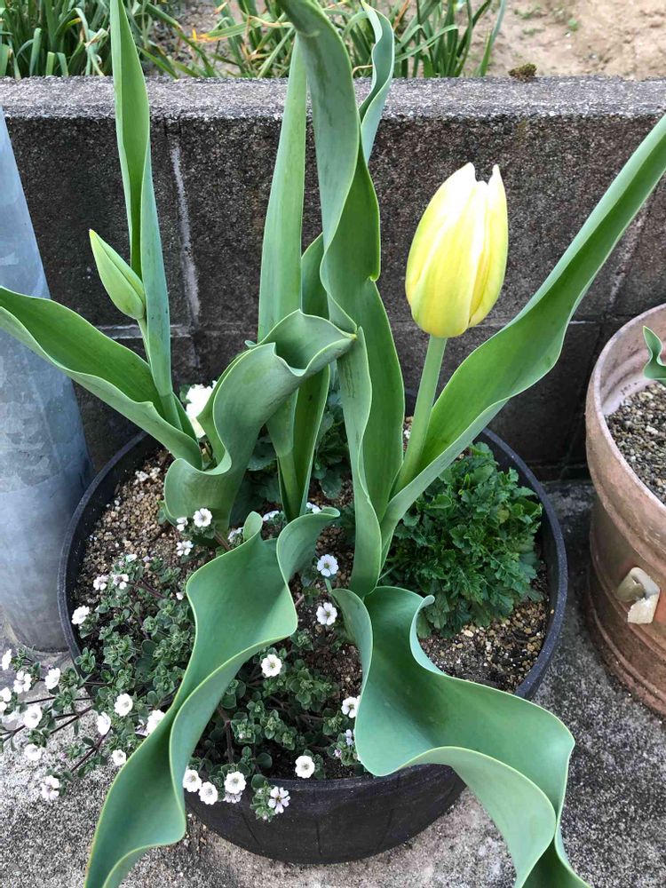 他のチューリップはまだツボミなのをみると、早咲きなのかな🤔
