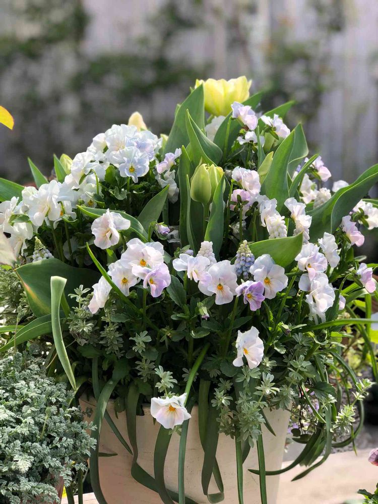 ダブルデッカーは初の試みで、あまり調べもせずに、鉢の中程にチューリップ、その上にシエルブリエをドーンッ💦と二株植えてしまい。