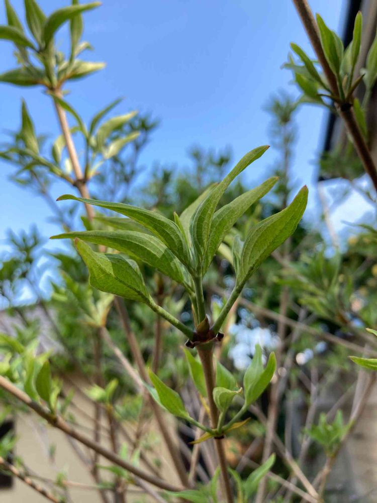 虫がついて短く切ってしまったヤマボウシですがちゃんと時期が来ると当たり前ですか新芽が出てきて感動😚
