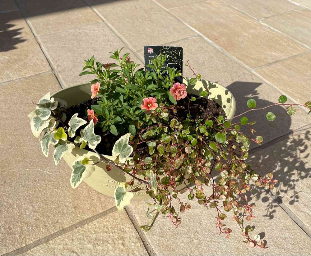 ジョルディカワムラさんの、カリブラコア ティフォシーアンティークシリーズ。かわいすぎて寄せ植えにしてみたけど、育ってきたら邪魔になるかな?