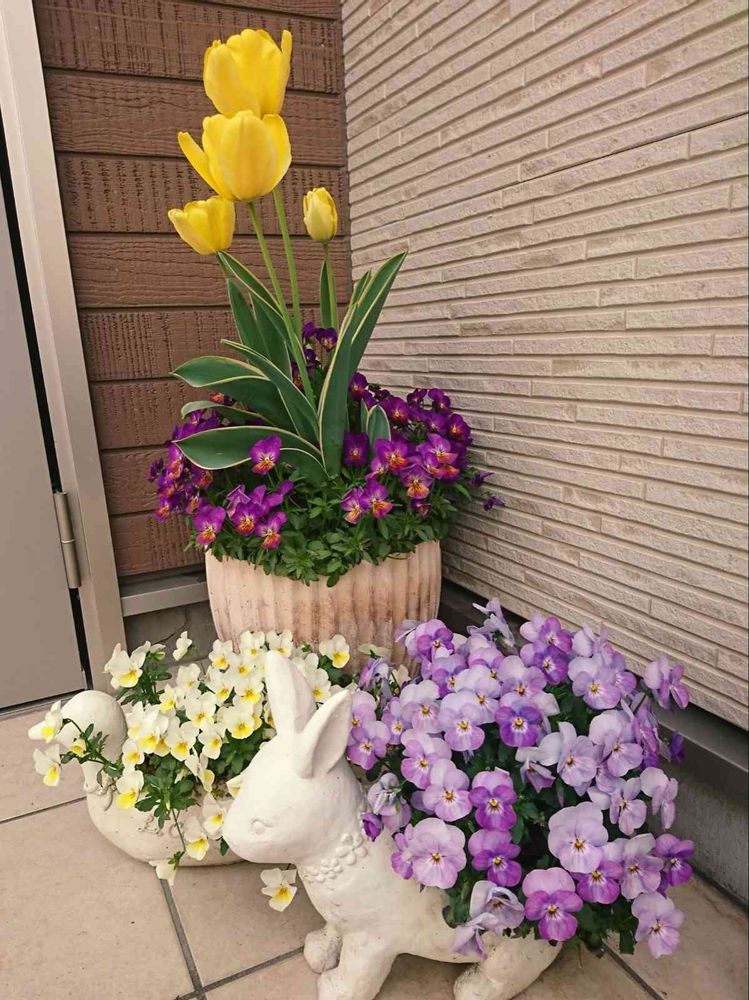 あざみ*さんの玄関,葉も美しいチューリップ,ビオラ ももか あかつきの投稿画像