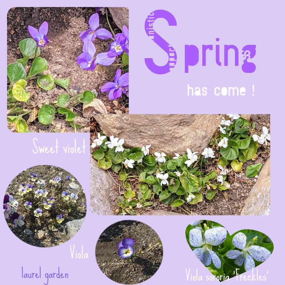 スミレやこぼれ種のビオラがあちこちに咲き、マイガーデンにもSpring has come!