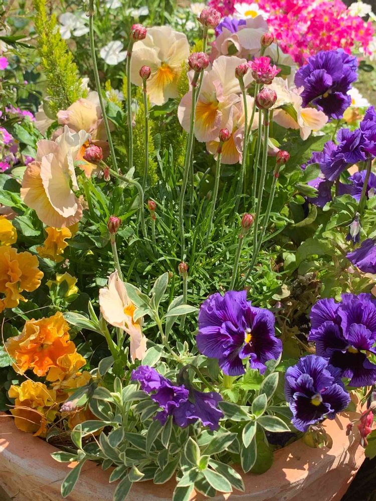 これから咲くアルメリアさんを、みんなが周りで、見守っているよ、頑張れー、応援しているよって言っているお花さん達です❤️一年生の春💖💖💖㊗️💖💖💖