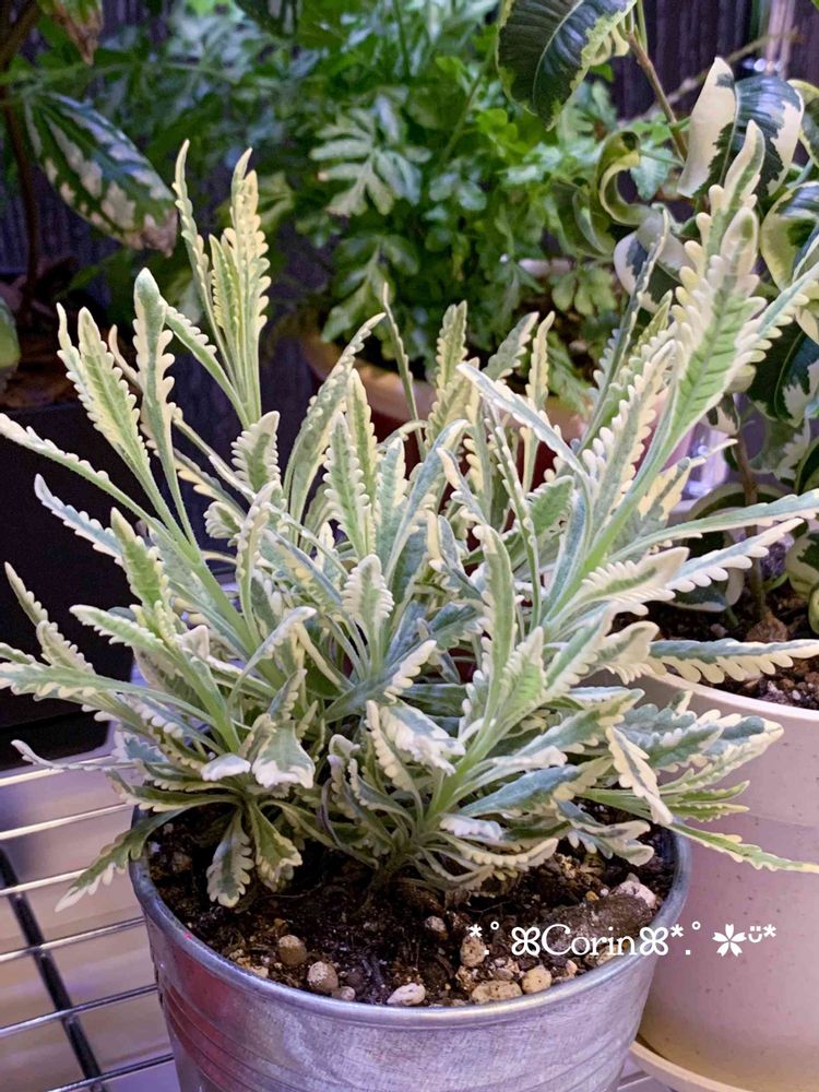 ギザギザでクリーム色の斑入り葉っぱが可愛いです🌱🌿.∘
