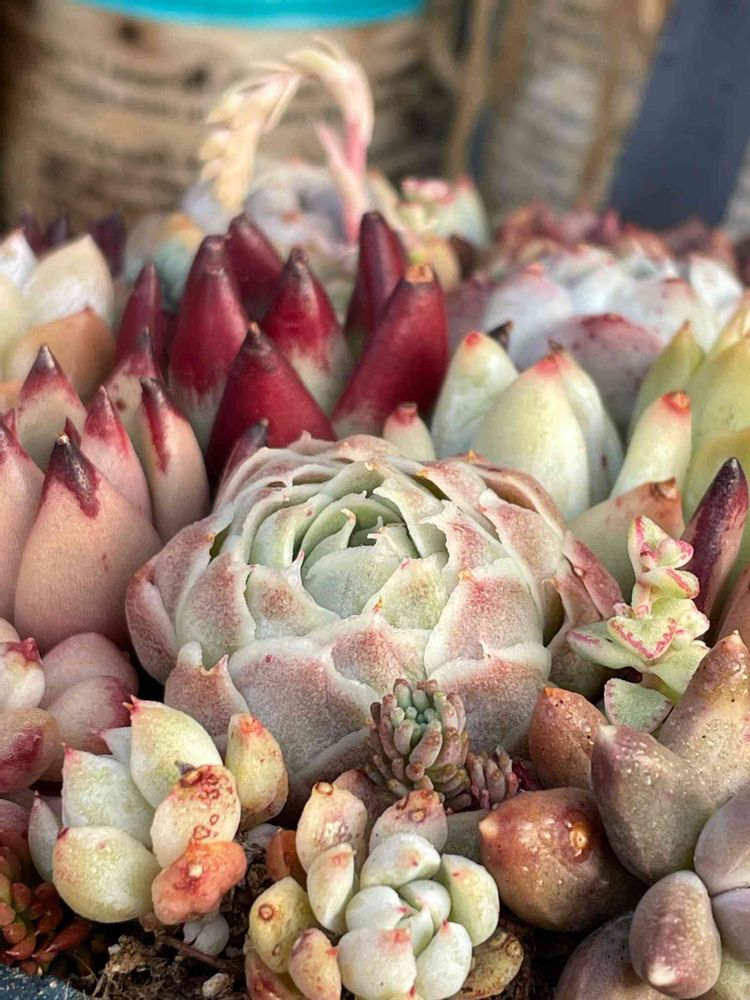 後ろの3つはトロピカルガーデンさんの寄せ植えセットのイチブ😁✨✨💕めちゃくちゃ可愛くてお得なのよ〜💕🌱手前のちびちびはうちの増えた子😂隙間埋めるのにピックアップしてきたよ〜