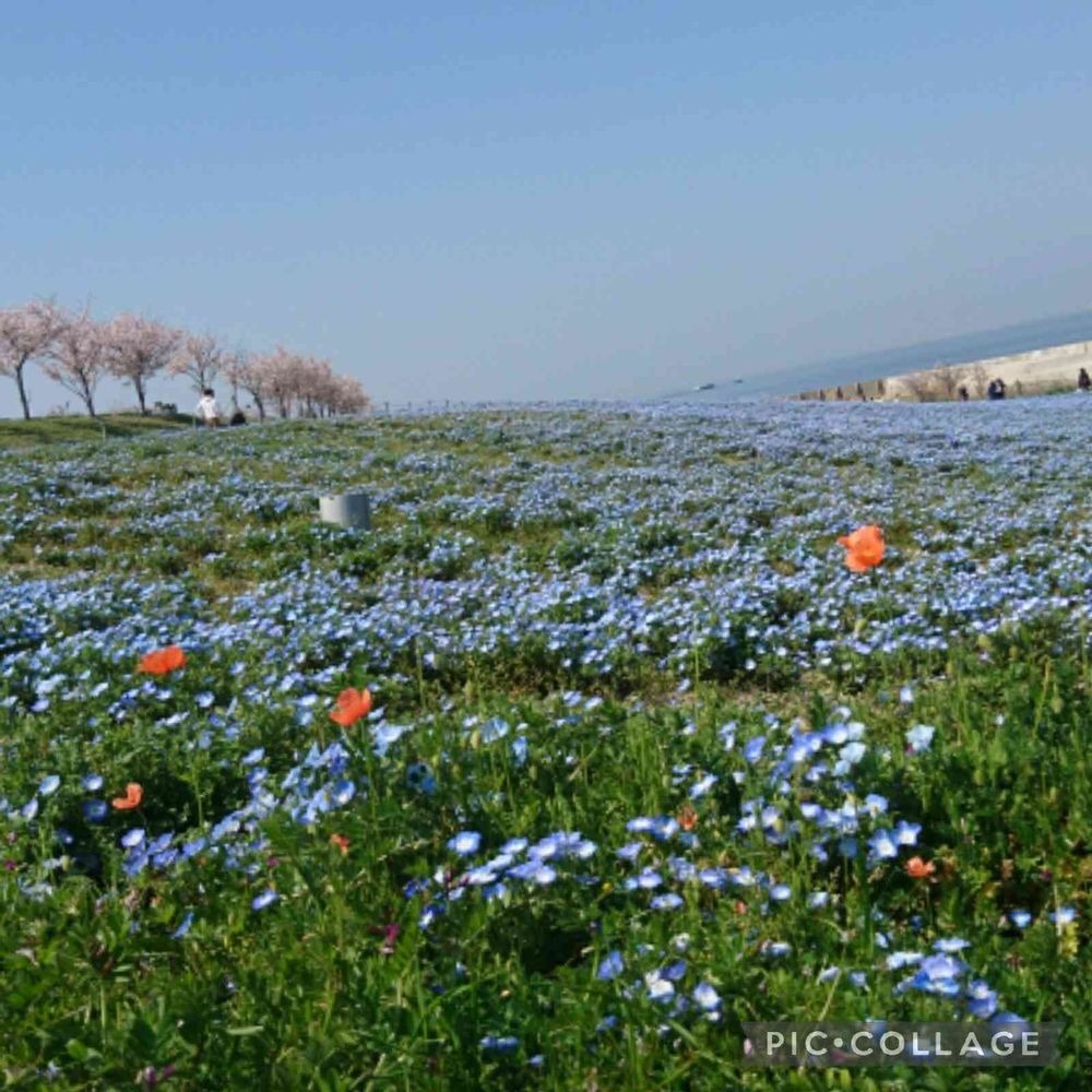 桜🌸ネモフィラ、海、空、ナガミヒナゲシ