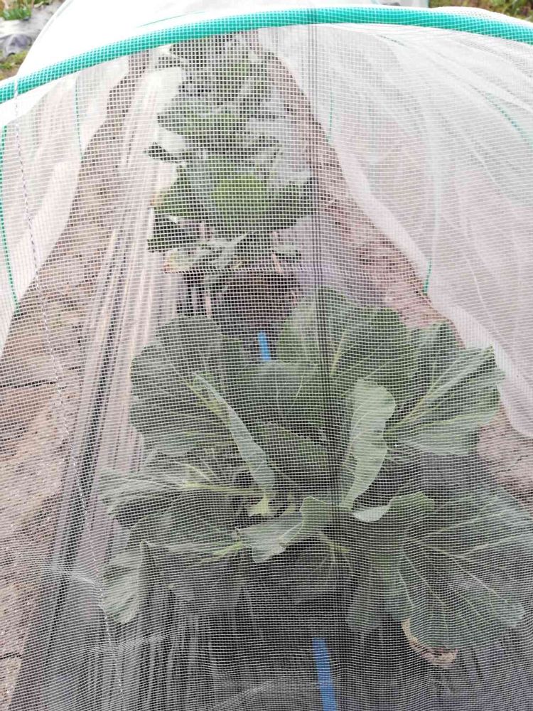 お隣のおばあさんがソロソロ蝶🦋が出て来たので卵を産み付ける前にネットを掛けようと声掛けてくれたので昨日追肥してから完了✨✨ コレで青虫取らなくていいから助かる〜😂
