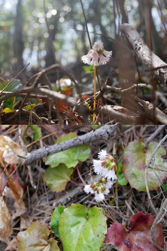 白いのには、東海地方(愛知、山梨、長野、静岡)のごく限られた場所に分布するヤマイワカガミも有るそうですが、詳しくは分かりません。