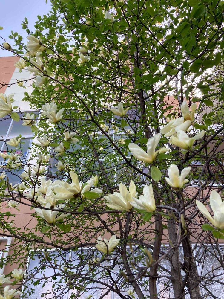 上里イオンの庭には、オープン時皆んなで植樹した木が沢山ありますが、随分大きくなって、このモクレンは色も緑っぽい白で素敵です💕