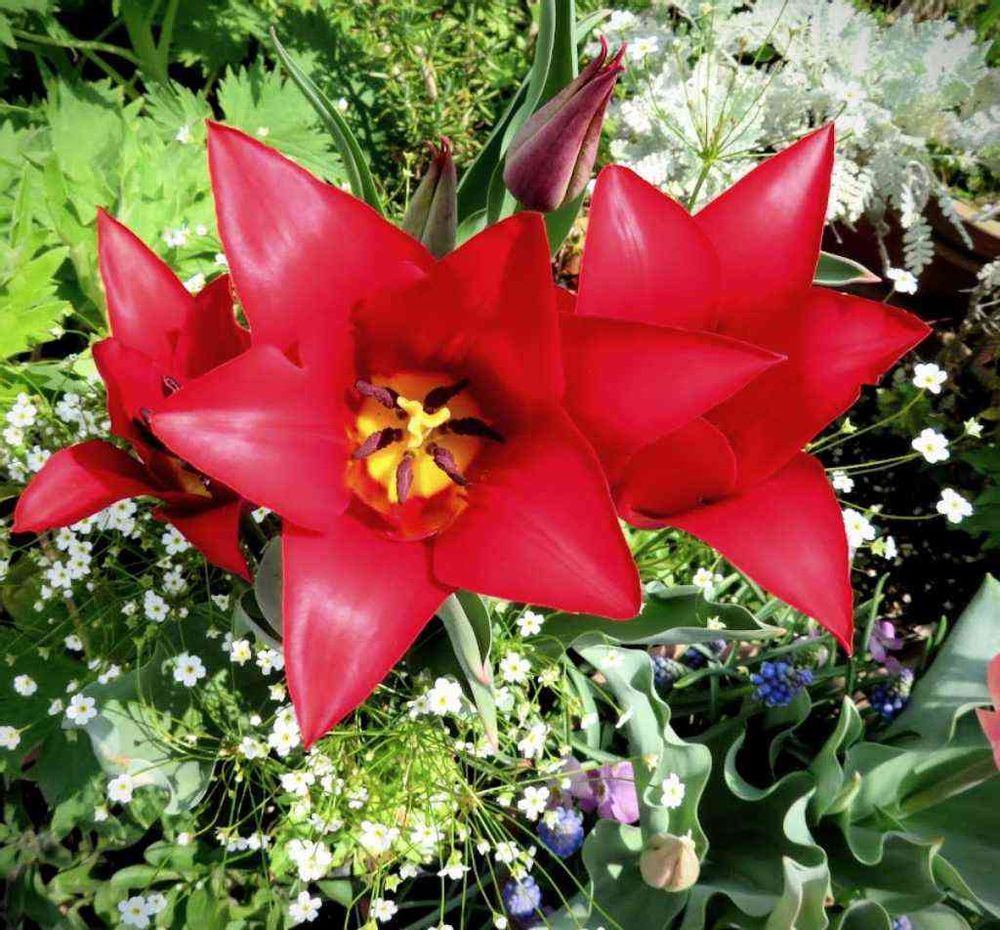赤いチューリップと、アンドロサセ良い感じですねー🌷🌷とても参考になります🥰🥰