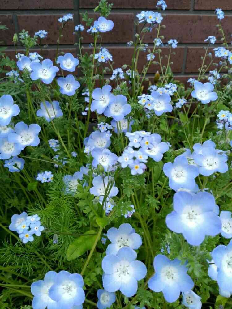 種から育てたネモフィラとわすれなぐさ。満開になりました。