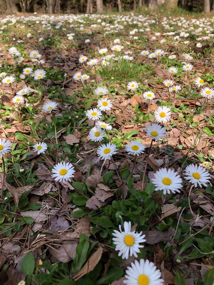 赤城自然園の芝生広場ではイングリッシュデージーが、広場いっぱいに咲き誇っていました。😊👍🎶📸