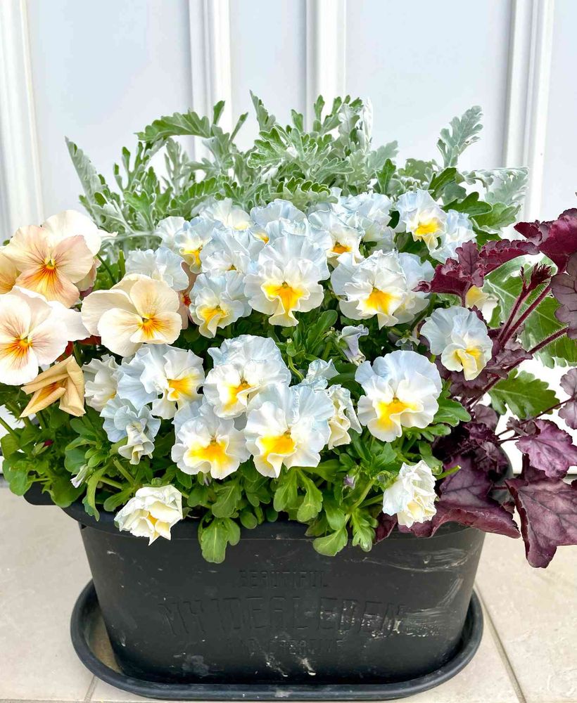 水色のシエルブリエとヒューケラは挿し芽も成功して、他の寄せ植えにも使っています😊