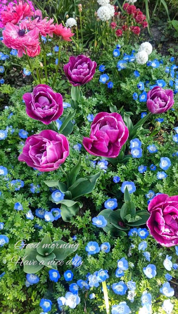 ネモフィラの青とチューリップのパープルピンクでcuteな華やかさ💕ℓσνє