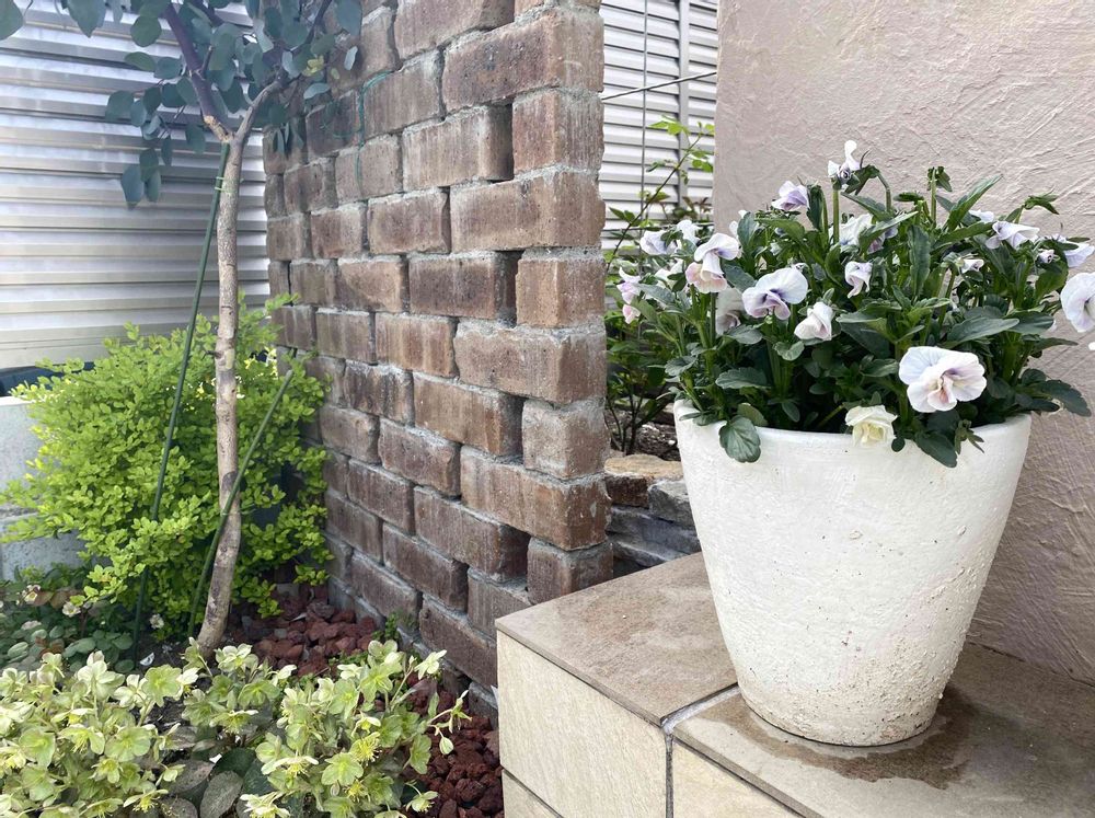 パンジーのシエルブリエさんが、ずっとこんな感じで地味に開花中😅