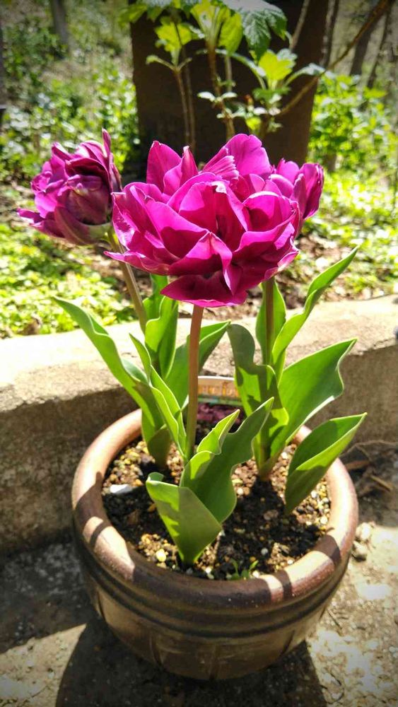 2025年は植物たちに肥料を与える鬼ヤドカリさんの広い庭,チューリップ,ブルーダイヤの投稿画像