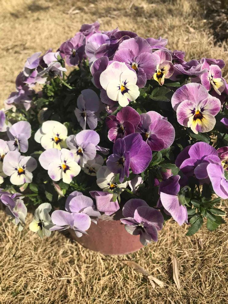 ピンクの鉢にピンクのビオラを🌸で寄せた鉢(^O^) お安くなっていたピンクの鉢ラッキーってご購入♡