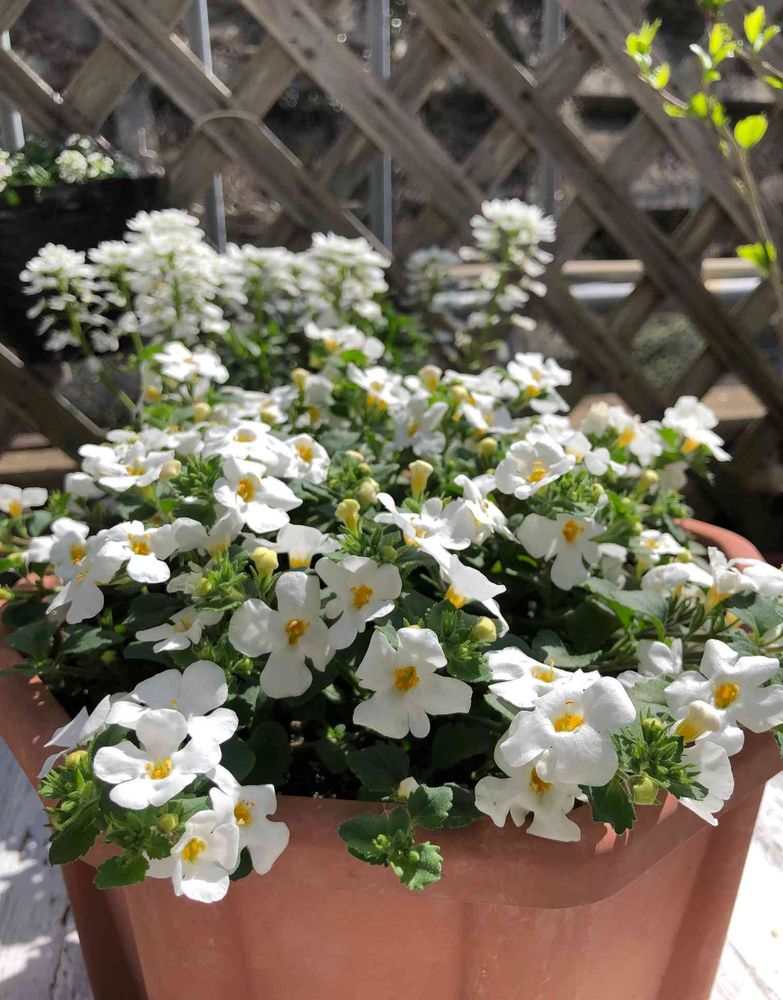 去年の10月から育てている🤍バコパさん🤍 花数が増えず、形も整わず、、カットしたり、陽当たりいいところに置いたり、、やっとこれまでになりました、可愛いです💕💕💕