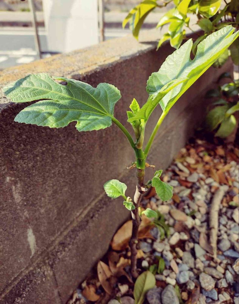 今年植えたばかりのイチジク。芽吹いてきたと思ったら、あっという間に葉っぱがイチジクの形になってビックリ!
