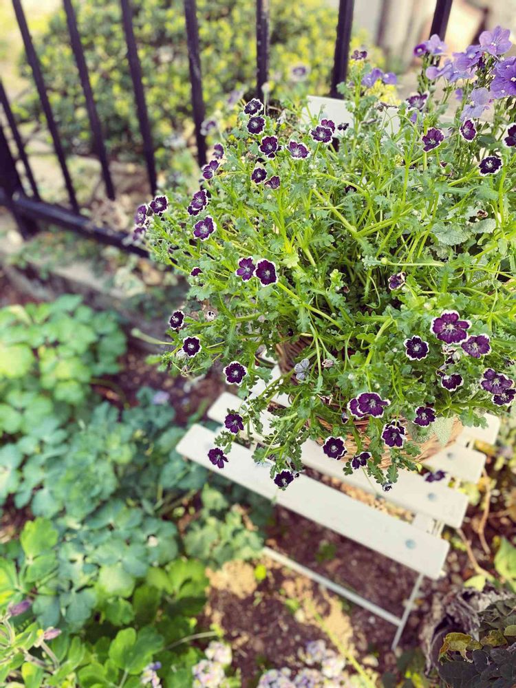 ネモフィラがあまりにも暴れん坊将軍なので、もう種をふんだんに落としてもらおうと 花壇コーナーに引っ越しました💧