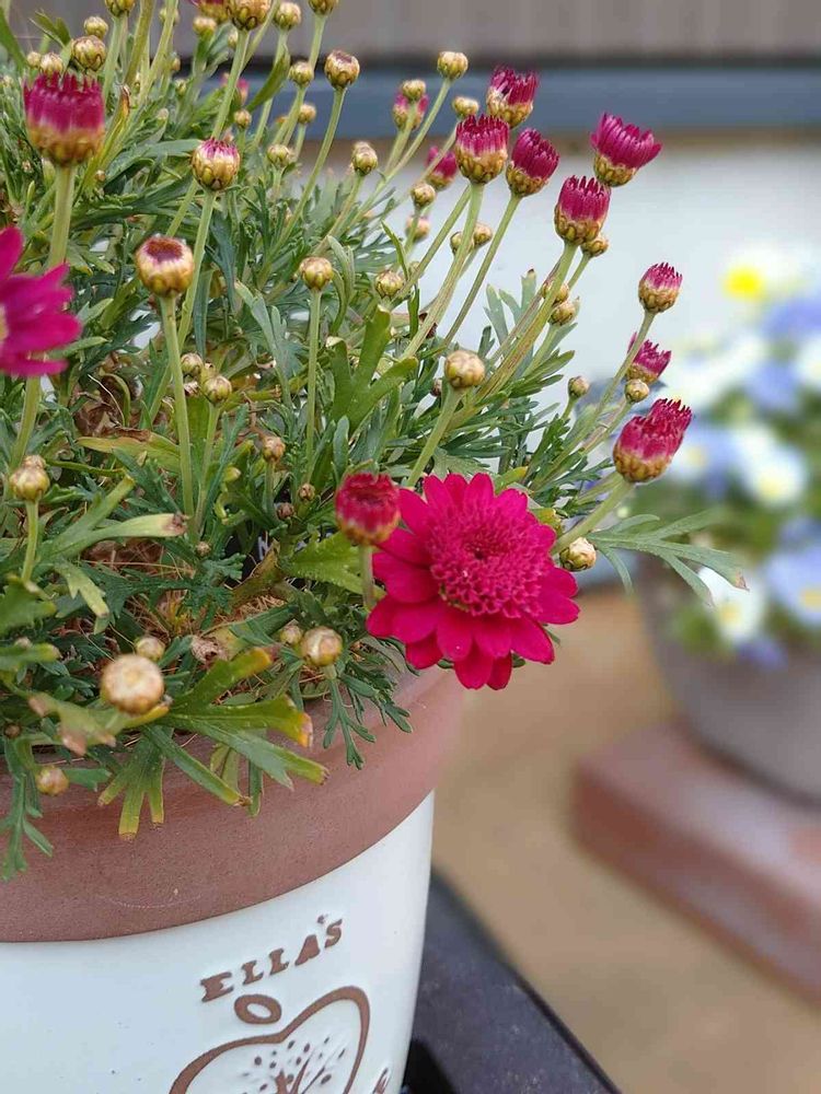 冬に雪の下に埋まって、くっちゃくちゃに枯れちゃって、ガーデニング初めての私は「終わった…😓」って思ってたボンザマーガレット🌼