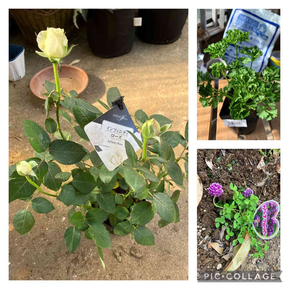 とりあえず奥様が欲しいと言っていたパセリとグランドカバー用のとインフィニティローズがグリーン系で綺麗だったので購入。