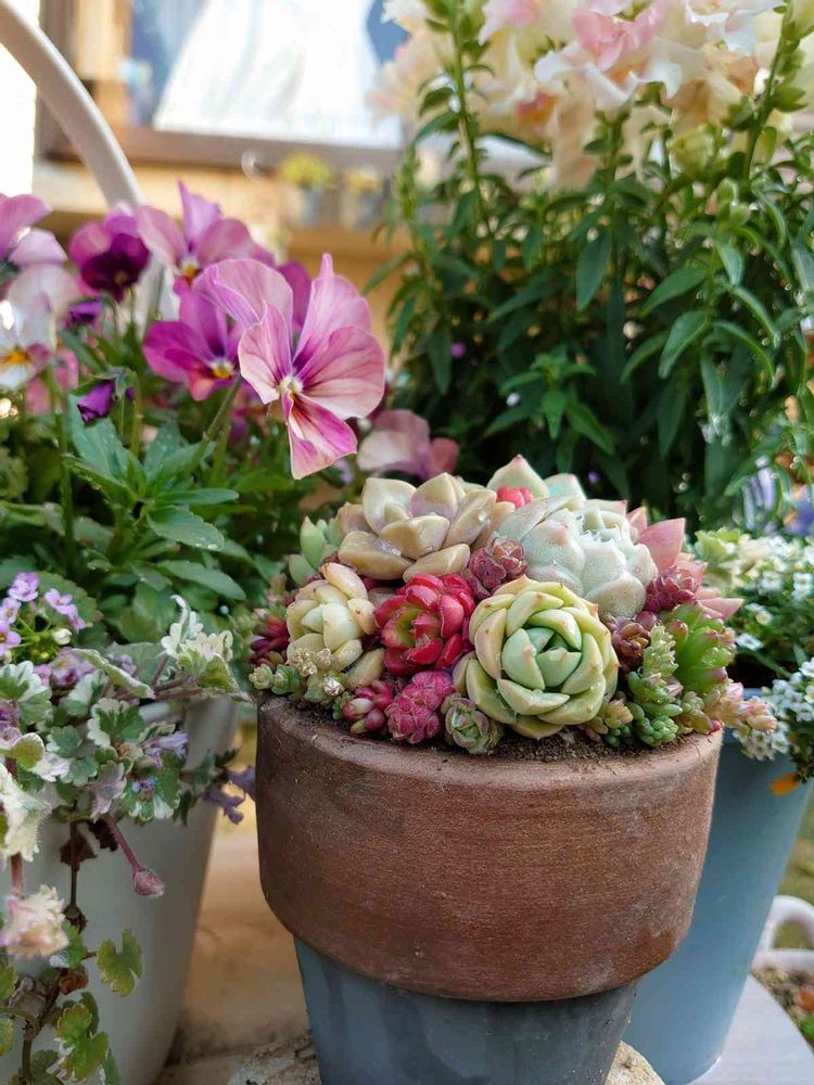 ドーム寄せは裏側も可愛い苗で寄せ植えさせてもらったの
