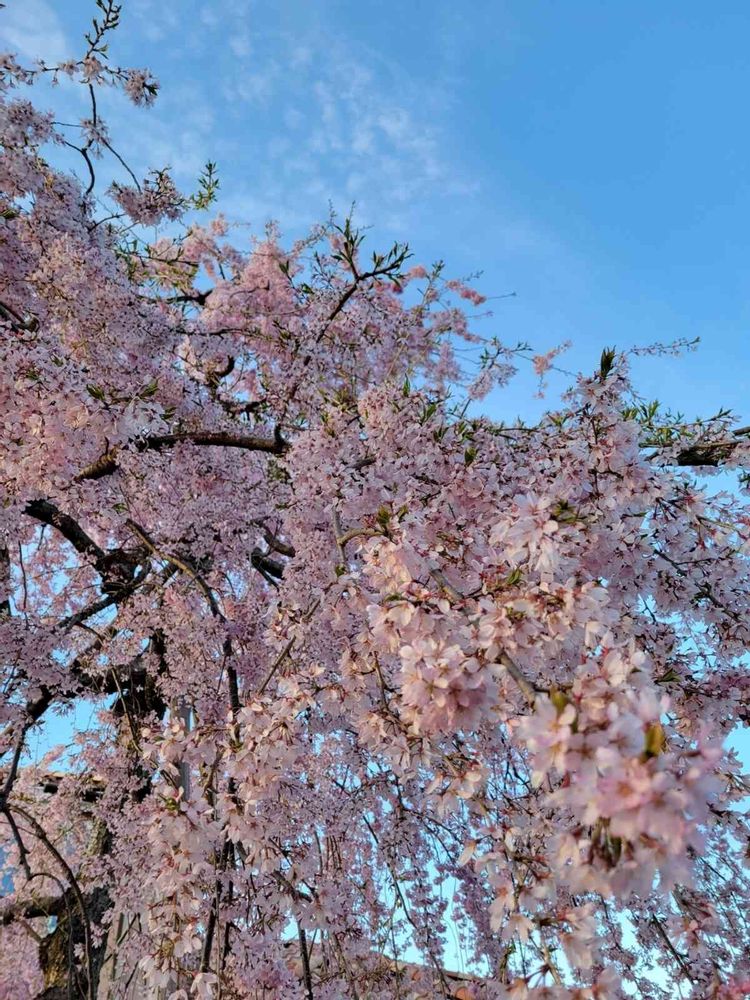 芝生のお庭に大木🌸 戸建てのおうちの2Fの屋根をゆうに超えていた こぼれ落ちてくるような見事な満開