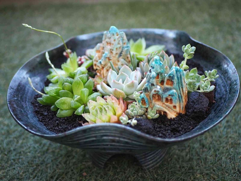 多肉が足りなくなりそうだったので、蝋石でお城のオブジェを自作しましたが、無い方が良かったかも……。