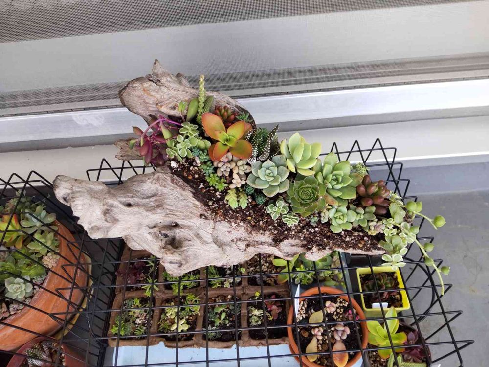 母の日にプレゼントしようと思い、流木掘って寄せ植えをしました🌱土が流れ出てしまうので外側にネルソルで壁を作りなんとか完成✨まだ、グラグラしてるので早く根付いてモリっとなってほしいなぁ…😌