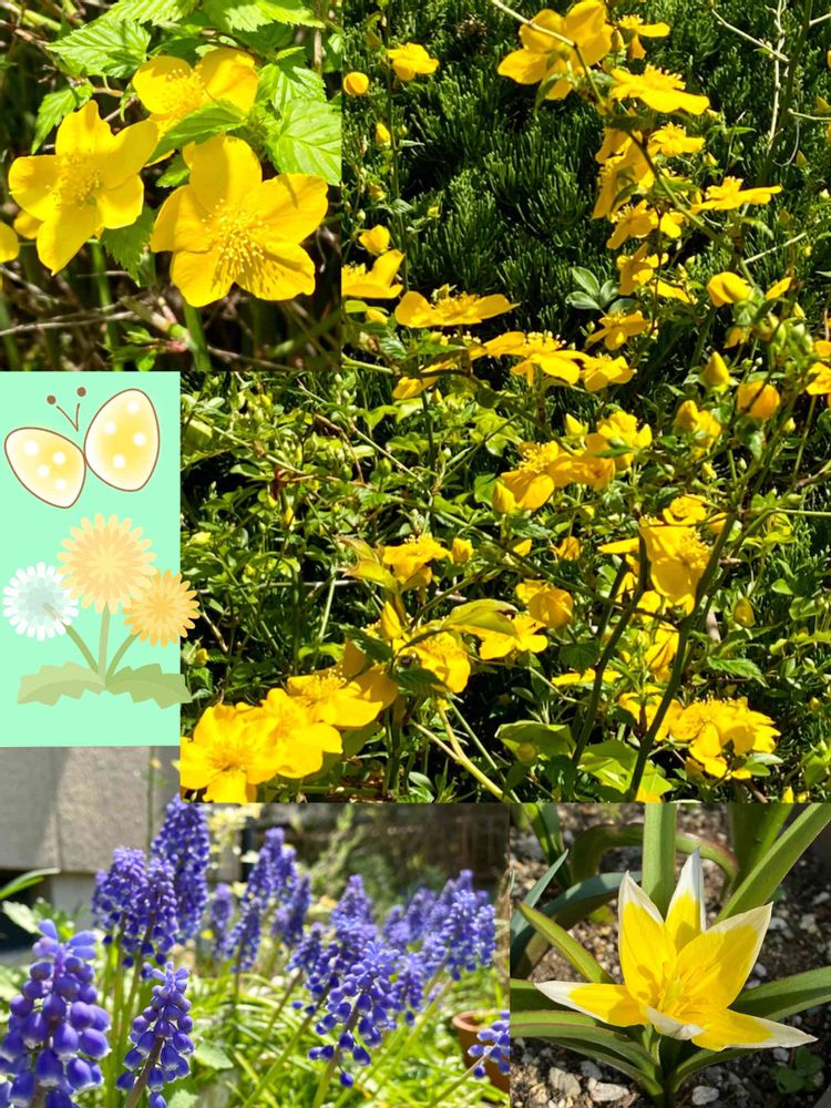 山吹、ムスカリ、チューリップ🌷