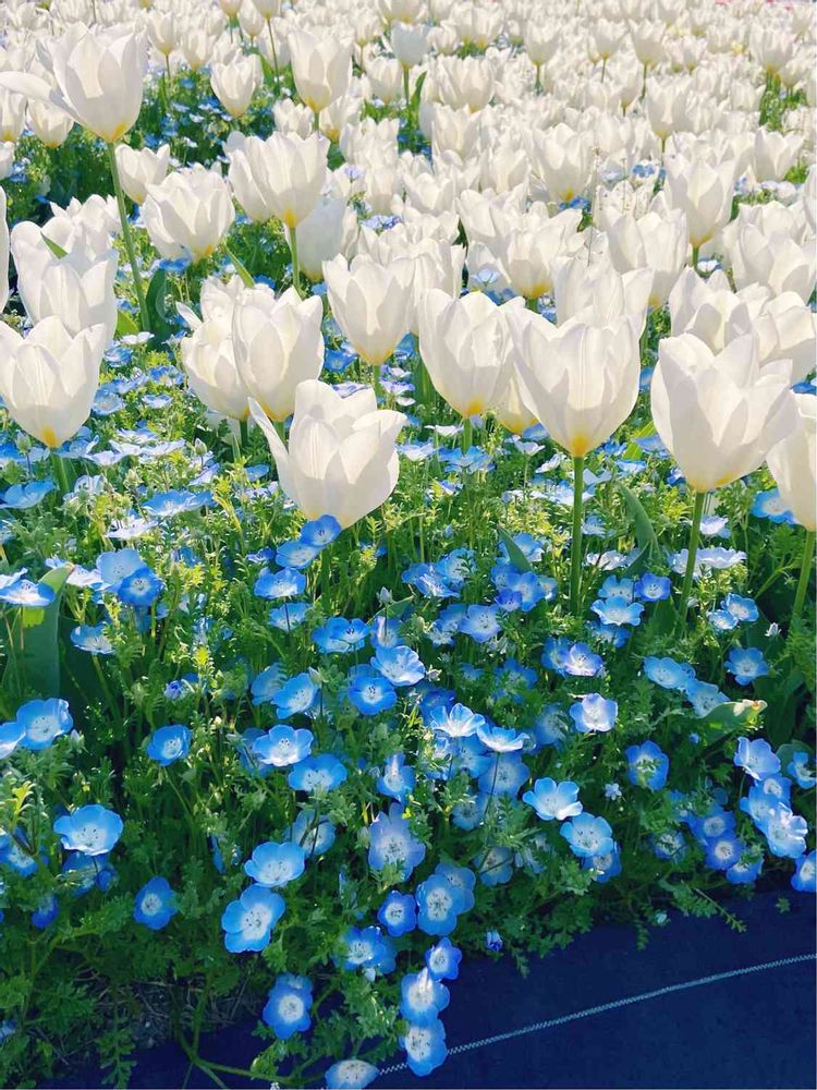 青い花と白いチューリップ🌷