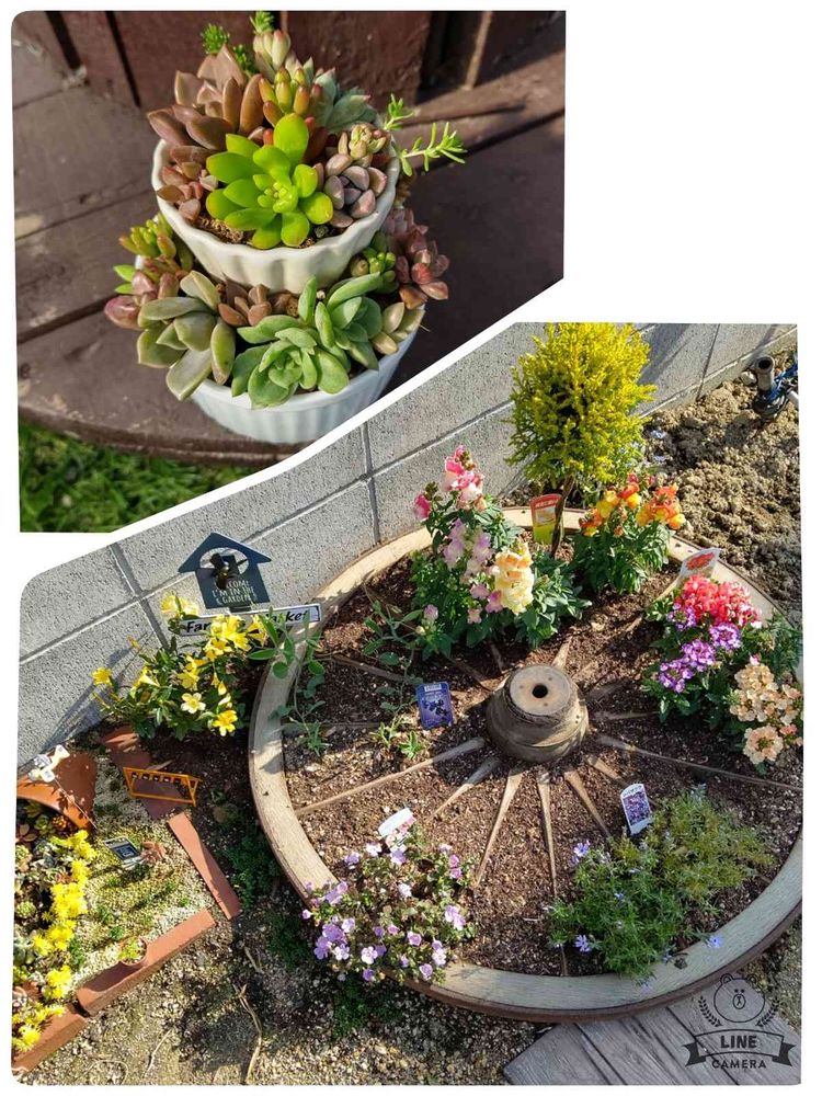 昨日朝から2段容器の寄せ植えを手直し。いくつか小苗に入れ換えてみました。
