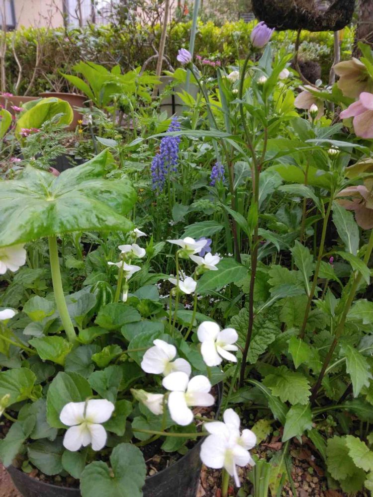 白いスミレ、都忘れ、ムスッカリ、この場所はオルレア、薄紅カノコソウが咲き出すと華やかになるのよ😊