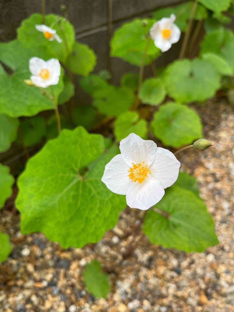 日陰に自生の白雪芥子。葉っぱはかわいいし花は可憐。でも増えすぎないよう抜いています。