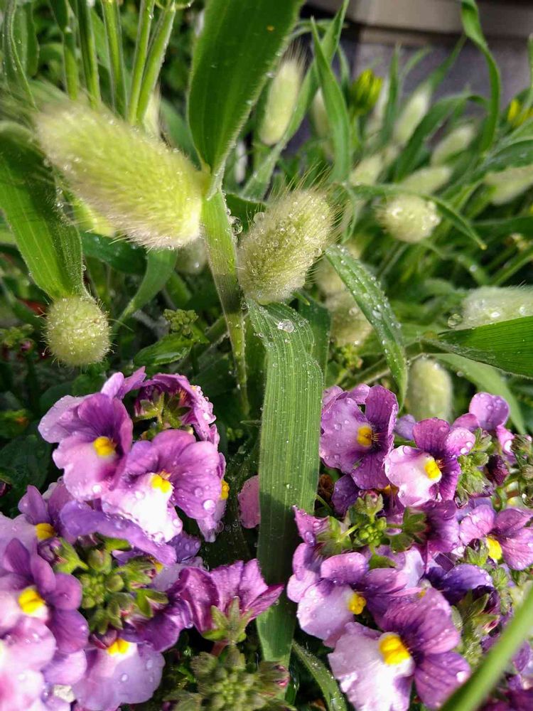 あーちゃんさんのラグラス バニーテール,ネメシア ブルーバイカラー,鉢植えのお花の投稿画像