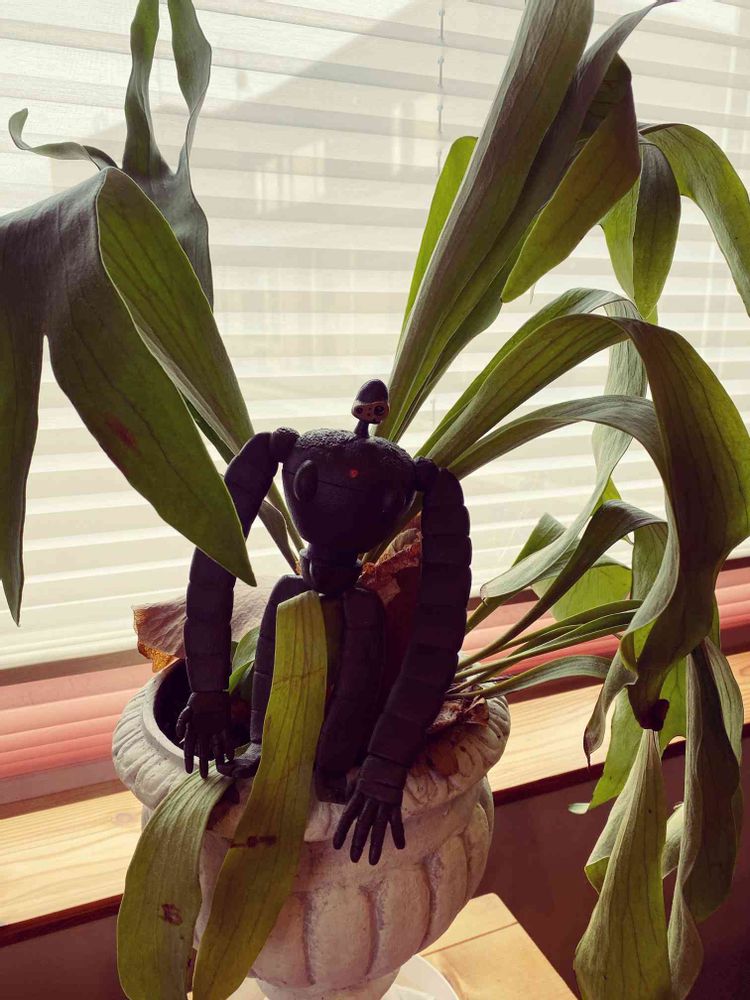 室内のコウモリランにラピュタのロボット兵を飾ってみた😄