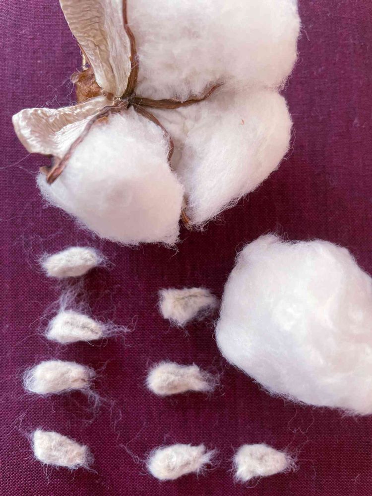 1つ広げてみたら ワタの中から8個の種が出てきました。