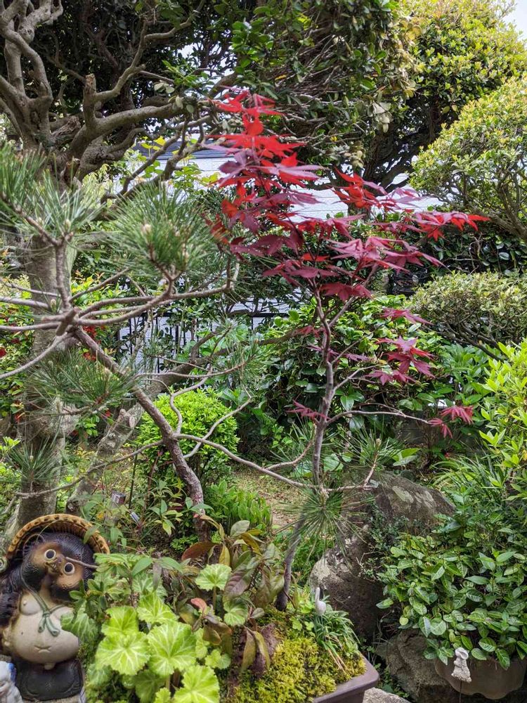 盆栽のモミジが大きくなり赤い新葉でイキイキ〜✌️😄🎶✨