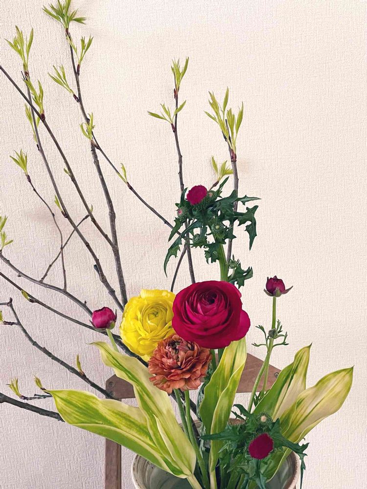 予定がありお花だけをいただいて帰り、先生にプレッシャーをかけられた生け方をしてみたけどー…😅