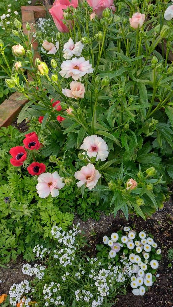 ニ年目のラナンキュラスラックス、次々と開花し始めました。アネモネと一緒に咲いてくれた~