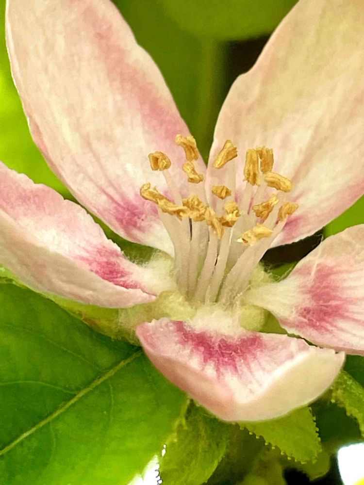 4/10にカリンの花の横顔を投稿しましたが、今日お散歩中に低い枝で咲いているカリンの花を見つけたので、アップで撮ってみました😊