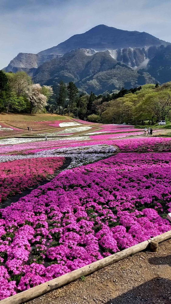 なるほど〜セメントがあるのがわかります❣️カッコいい山⛰と、広大な芝桜が、、広がってよいpicですね😍