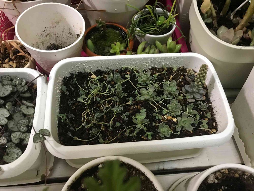 右半分は、植え替え成功した子持ち蓮華。左半分は、根を埋め込まずにそこら辺にポイっと置いてたから全く元気ない子達。今日綺麗に植え替えたので、今後はみんな元気に育ってくれるといいな〜。